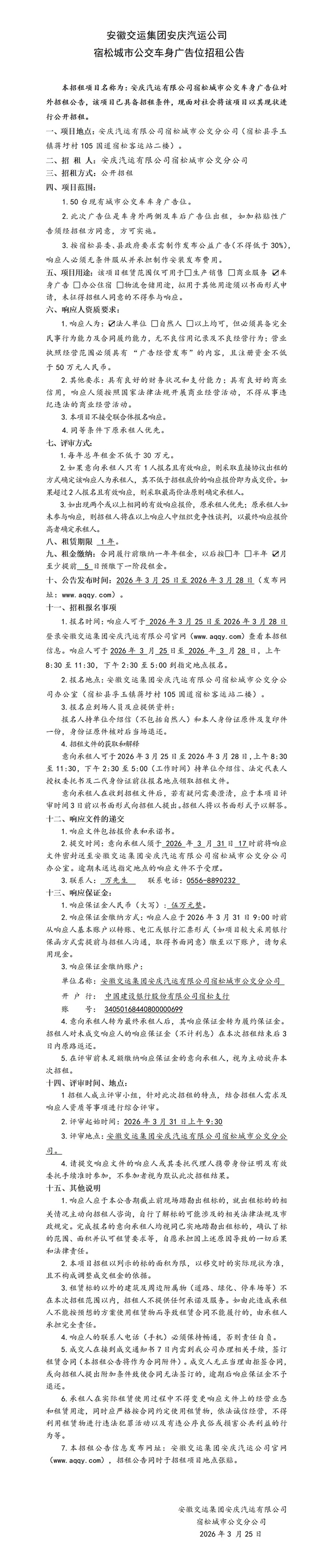 宿松城市公交車(chē)身廣告招租公告