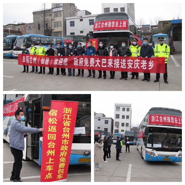 自國家吹響復(fù)工復(fù)產(chǎn)的號角后,江浙地區(qū)各地市紛紛成立招工小組,領(lǐng)導掛帥,遠赴省外駐點招工。受臺州市政府委派,仙居縣政協(xié)副主席王利民帶隊來到安慶市宿松縣駐點招工,宣傳推介臺州市企業(yè)和用工需要。初期由于工作組人地生疏,信息獲取不對稱,加之和宿松本地相關(guān)部門處于“磨合期”,招工進度滯后。宿松分公司經(jīng)理劉地旺了解此事后,主動通過縣政協(xié)和王利民副主席取得聯(lián)系,達成合作意向,并上報安慶汽運公司。公司領(lǐng)導非常重視,總經(jīng)理王中明親自和王利民副主席就在安慶全域聯(lián)合招工戰(zhàn)略合作進行溝通,總經(jīng)理助理許長友到宿松就地指揮協(xié)調(diào)宿松片車輛單位幫助臺州工作組招工。經(jīng)過雙方共同努力,3月8日上午,首班宿松至臺州返崗復(fù)工人員包車從宿松車站發(fā)出。宿松縣交通局、人社局、就業(yè)局、運管局、交通派出所領(lǐng)導參加了發(fā)車儀式。