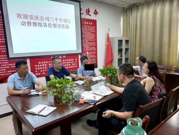 督查組到懷寧分公司后,召開了分公司班子成員參加的工作座談會。分公司黨政負責人及相關負責人匯報了“三個專項”行動和清單化管理落實情況,督查組聽取匯報后并對相關對應基礎資料進行了查閱。