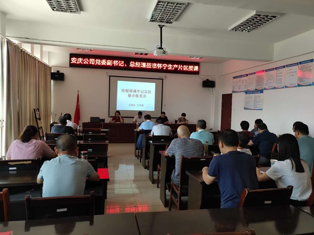 9月7日下午,安慶公司黨委副書記、總經理王中明、監(jiān)事會主席余雙友、黨辦主任楊玲、黨委秘書李春梅等同志一行來懷寧片區(qū),給懷寧片區(qū)全體在崗黨員、科室負責人、領導班子成員上了一堂生動的黨課。
