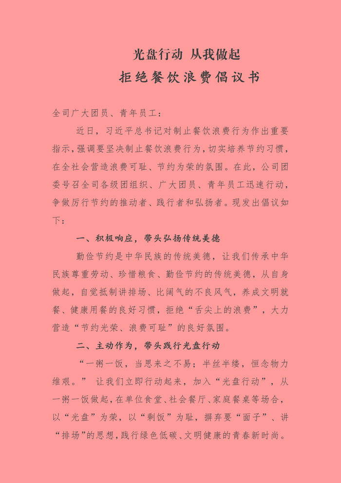 拒絕餐飲浪費倡議書