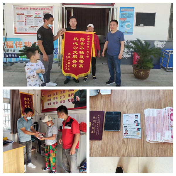 事情是這樣的,2022年6月4日下午,宿松城市5路公交車到終點(diǎn)站,駕駛員黎石保在乘客下車后對(duì)車輛進(jìn)行清潔消毒時(shí),突然發(fā)現(xiàn)車廂座位上有一個(gè)黃色布袋。打開(kāi)一看布袋里有個(gè)黑色皮包,皮包內(nèi)有現(xiàn)金、身份證、社?ǖ。黎石保原地等待一段時(shí)間,失主一直沒(méi)有出現(xiàn)。公交班車回站后,依照公司相關(guān)管理規(guī)定,黎石保第一時(shí)間將布袋上交公司。經(jīng)工作人員清點(diǎn),內(nèi)有現(xiàn)金4700元,2張身份證、2張社?,以及一本存款1.6萬(wàn)的存折。